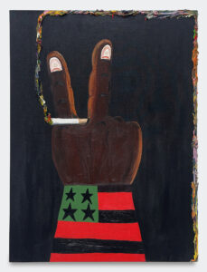 Devin Troy Strother, Two Fingers for David, 2023 (Oil on canvas, 101,5 x 76 cm).