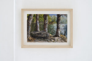 Charlie Roberts, Spring Lake (detail), 2024 (Watercolour on paper, frame, 20,5 x 26,5 cm).