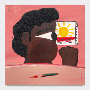 Devin Troy Strother, Knock Knock, Knocking on Philip’s Door, 2023 (Oil and acrylic on canvas, 76 x 76 cm).